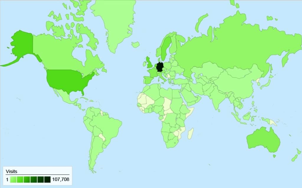 According to Google Analytics, in the past month the forums received more than 337,000 visits from 172 countries. The most visits by far are from Germany (107,708, 31.94%). In the 50th position is Luxembourg - 278 visits (0.08%) with less than half a million population. This map shows more detail, and the site usage shows the top ten countries.